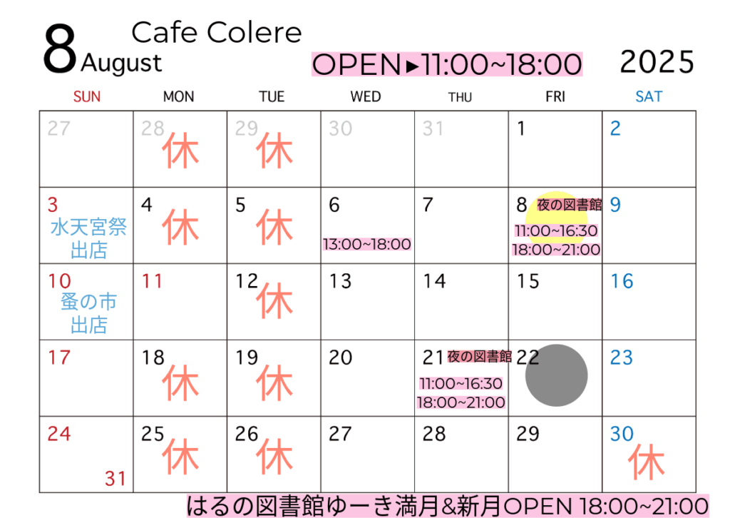 𓀩 8/22(金)新月前日◼︎はるの図書館ゆーき 開館